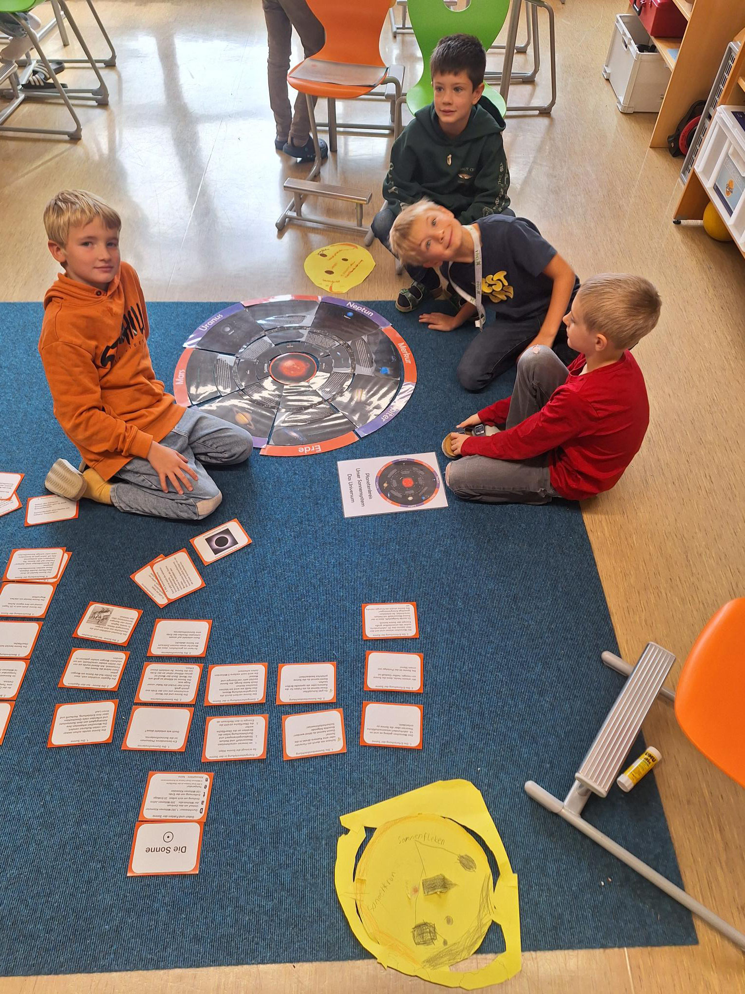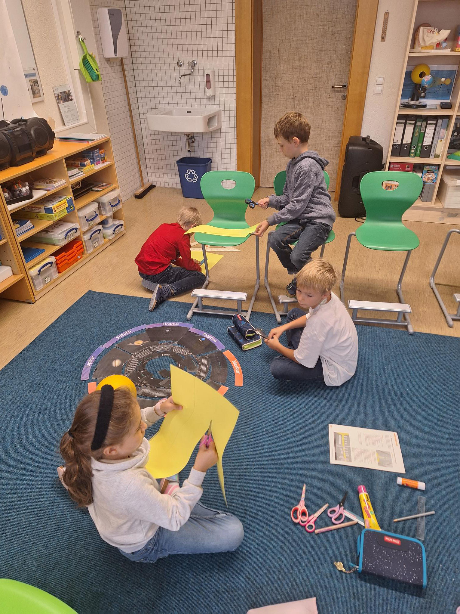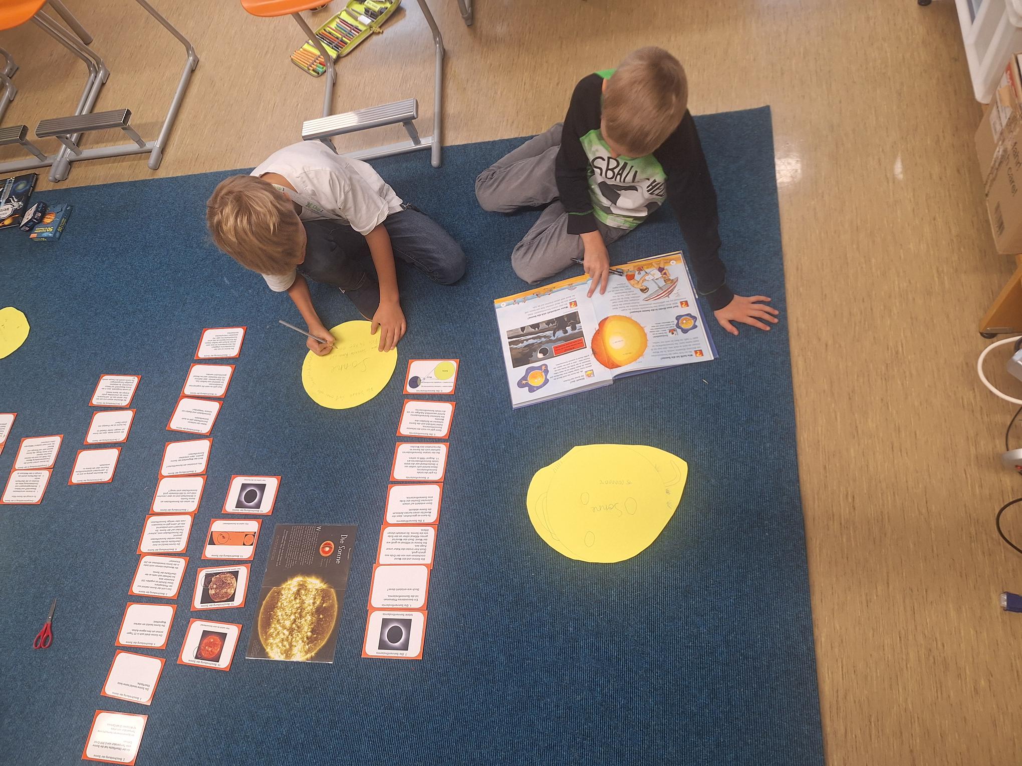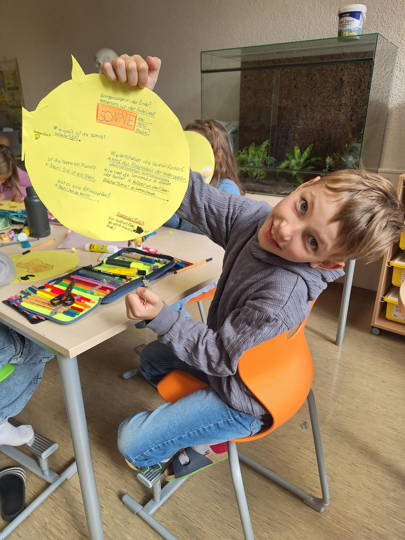 Es wurden fleißig Infos zu unseren Planeten und der Sonne gesammelt. Anschließend bastelten die Kinder eigene Sonnenbilder mit den wichtigsten Fakten zum "glühend heißen Stern".